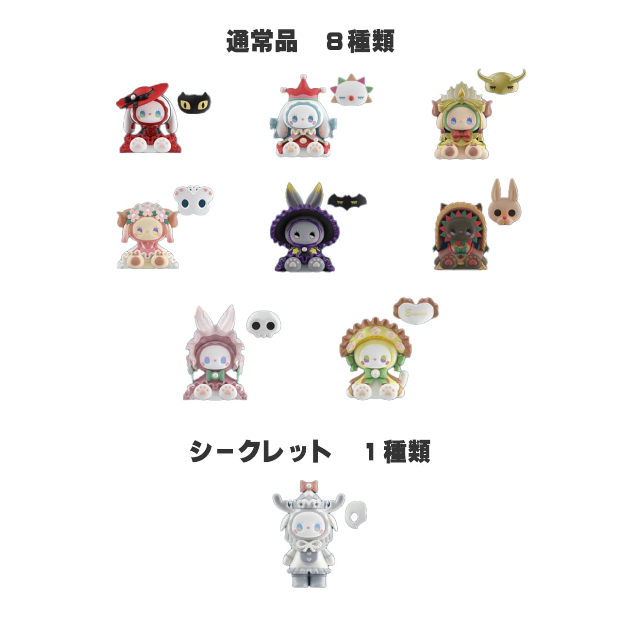 〇ブラインドボックスは、通常品8種類に加え、シークレット種類を含む合計9種類で構成されています。シークレットは特定の割合で封入されていますので、1セットの購入で必ず手に入るとは限りませんので、ご理解ください。